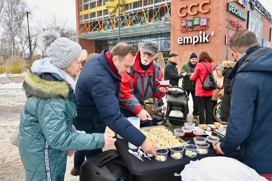 "To już stało się pewnego rodzaju naszą tradycją lewicową, że po prostu dzielimy się posiłkiem. W Łodzi dzielimy się już od kilkunastu lat, ale kilka lat temu rozpoczęliśmy taką akcję w całym województwie łódzkim. W poprzednich latach byliśmy w Zduńskiej Woli, Sieradzu, Piotrkowie Trybunalskim, Tomaszowie Mazowieckim i innych miastach, a dzisiaj naszą wyprawę zaczęliśmy od Skierniewic, a teraz jesteśmy w Rawie Mazowieckiej i będziemy jeszcze w Tomaszowie Mazowieckim. Dzielimy się posiłkiem, który składa się z ciepłego barszczu z uszkami, wegetariańskiej kapusty z grochem, pierogów z kapustą i grzybami, a także słodkiego ciasta. Chcemy tym też wskazać na pewien problem. Problem ubóstwa, który rozpowszechnia się w Polsce. Z raportu wynika, że poziom ubóstwa w Polsce rośnie. Chcemy uczulić wszystkich tych, którzy mogą sobie pozwolić na to, żeby podzielić się posiłkiem lub czymkolwiek innym, chociażby dobrym słowem, chociażby jakimś prezentem, żeby również dzielili się z innymi, bo dzielenie się daje radość nam wszystkim" - stwierdziła posłanka Anita Sowińska.